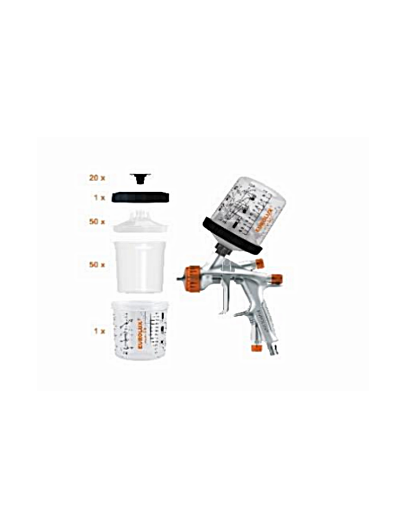 Paint Cup System är ett mycket effektivt system för färghantering som ersätter traditionella blandningskoppar och färgsilar. Genom att blanda och spruta färgen i samma liner minskas både arbetstiden och rengöringen avsevärt. Systemet möjliggör även sprutning i 360° i alla svåråtkomliga vinklar. Det finns i storlekarna 180 ml, 400 ml, 650 ml och 850 ml. Systemet består av en graderad hård kopp på 650 ml, en styv krage, femtio liners på 650 ml, femtio lock med integrerat 125 μm filter samt tjugo pluggar.
